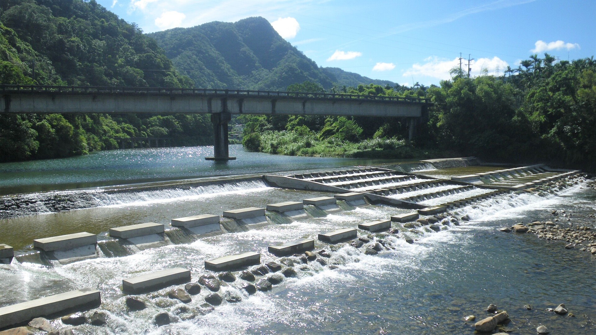 介紹 分階緩降式魚道,方便較大型魚類躍水過堰,階與階間預設深水區,方便水中生物休息、暫棲,堰體中間段設置落差更小的魚梯,提供小型魚類或攀爬生物上溯。(73年設置,99年維修,106年右侧復建) 交通資訊