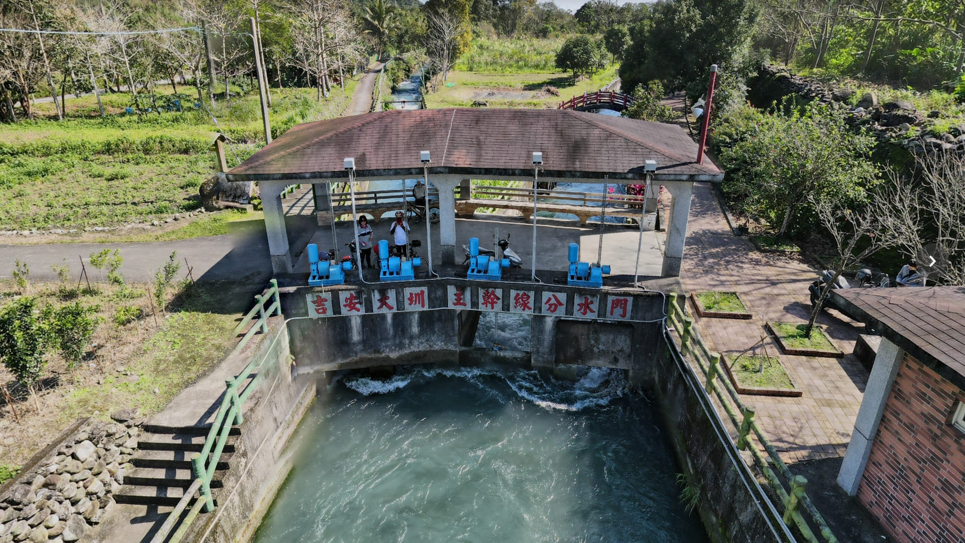 吉安大圳主幹線分水門以木瓜溪為水源,日據時代為灌溉移民村附近農田而設。當時稱之為「吉野圳」於民國二年12月底完成引水工程,灌溉面積約955公頃。台灣光復後擴建,引「台電初音發電廠」尾水,灌溉地區擴及吉安鄉及花蓮市,面積達2500餘公頃。民國93年依「邁進21世紀農業新方案」之政策,改善導水路,期水利設施兼具有生產、生態、生活的三生功能。導水路以砌塊石施設,兩側林木蓊鬱、鳥類和螢火蟲依之而生,水中魚蝦生態盎然,聯結初音自行車道,是不可多得的「芬多精」浴場。