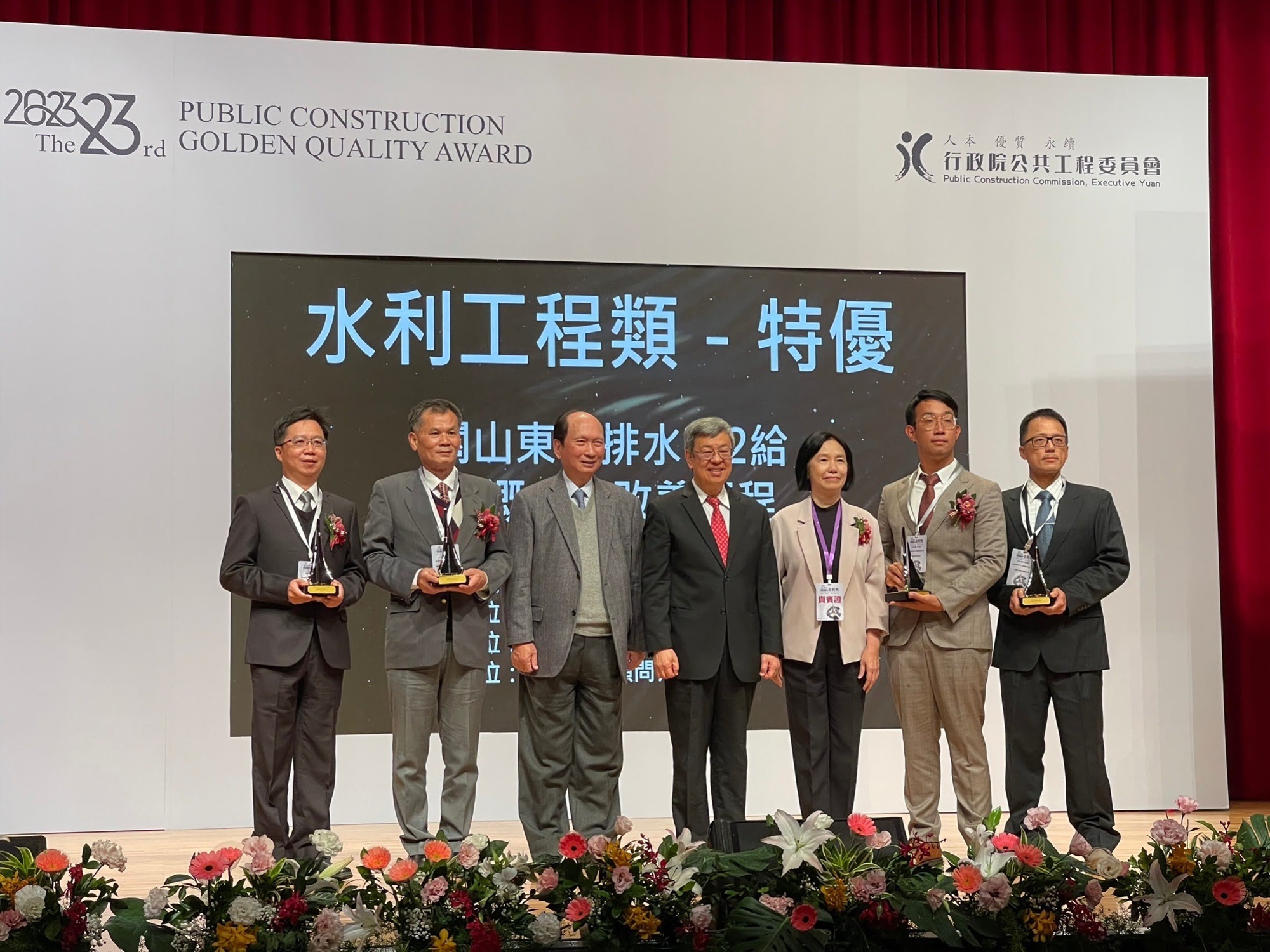 農業部農田水利署(以下稱農水署)臺東管理處辦理「關山東明排水幹2給灌溉系統改善工程」,以跨域合作、自然解方、工程減碳等方式,解決當地缺乏灌溉設施、環境陰暗隱蔽、水質優養化、原生物種棲地破壞及原住民文化傳承等問題,深受評選委員青睞,獲得公共工程金質獎特優殊榮。今(26)日由行政院陳建仁院長親自頒獎,肯定本工程促進當地農業永續發展,並豐富生態資源,優化生活環境的作為。