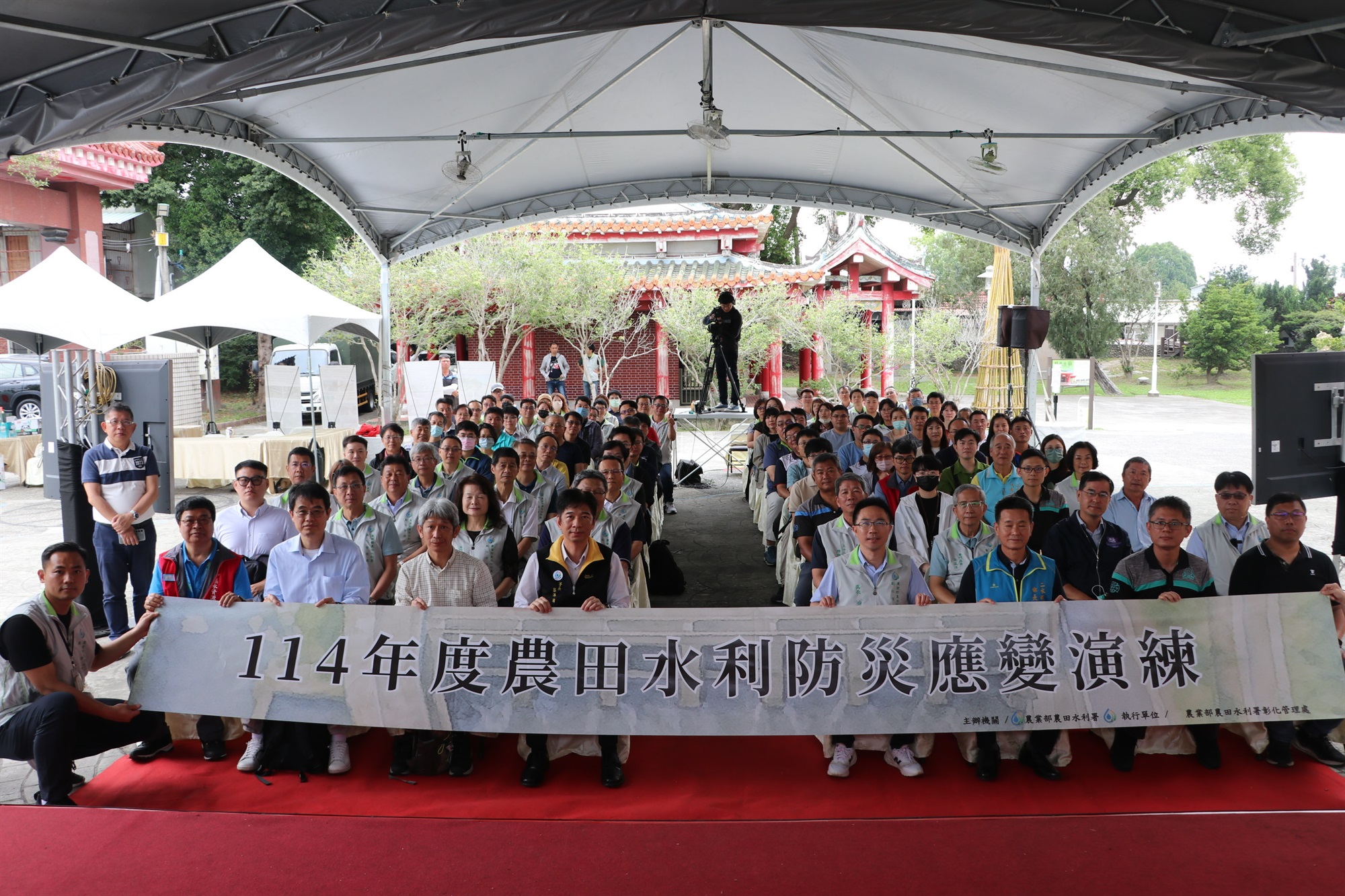 為強化在極端氣候下農田水利的防災應變能力,農業部農田水利署(以下簡稱農水署)於今(25)日假彰化縣八堡圳舉辦「114年農田水利防災應變演練」,模擬颱風期間多起災害事件,包括民眾落水、地震導致機電控制箱起火與閘門故障、水位高漲威脅土堤安全、以及土石流造成渠道淤積等狀況。此次實兵演練由農水署彰化管理處統籌,並與消防、警政、地方政府、農業部農村水保署、經濟部水利署及民間廠商等公私單位跨域協作,展現面對突發災害的即時處置能量與橫向協調效率。