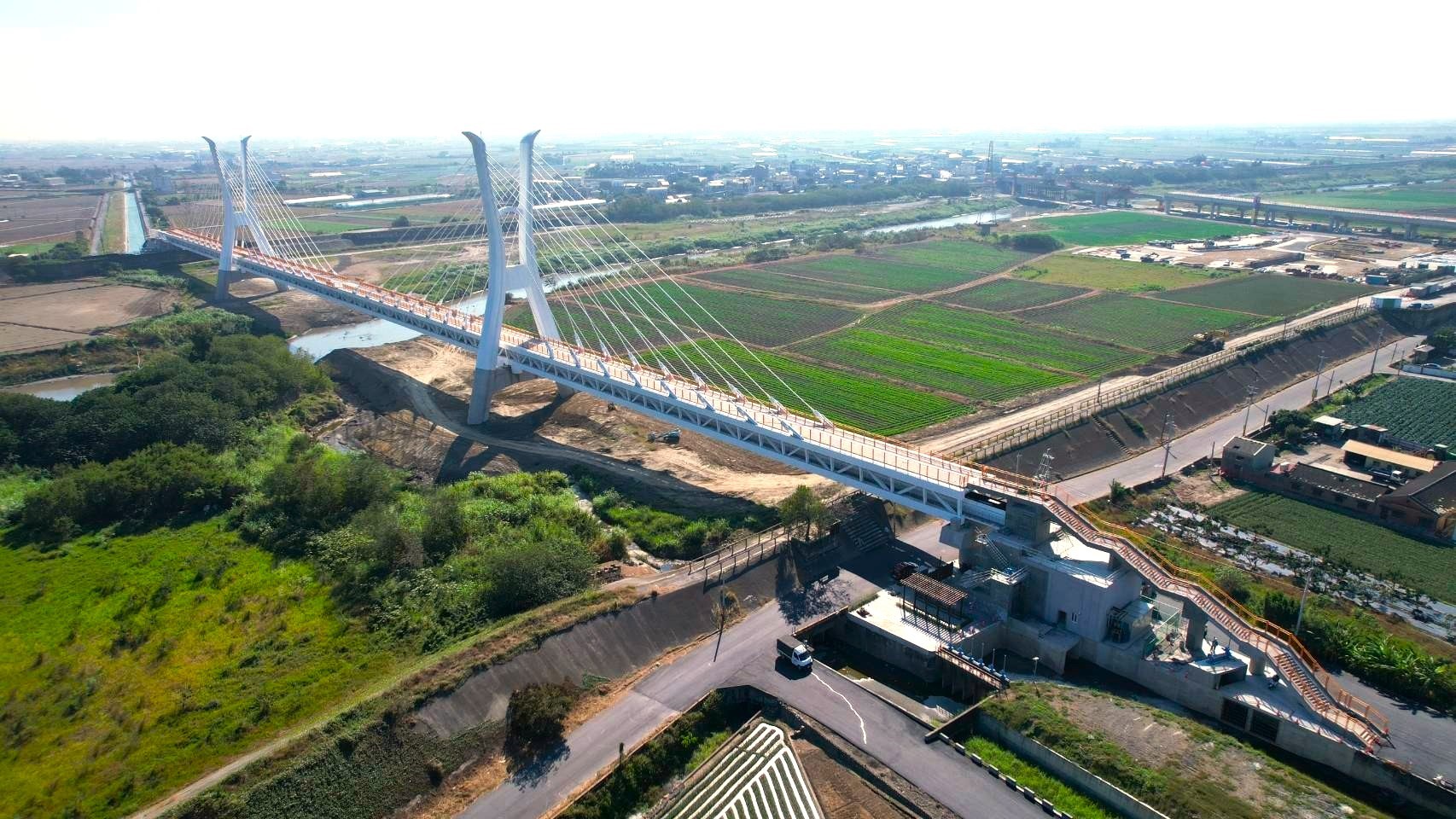 農水署表示,北港溪渡槽須橫跨河寬達465公尺,為增加河防安全,以落墩最少為原則,採兩墩三跨設計,因應輸水載重大,採用最新結構工法及輕量化鋼構設計。為縮短施工期程,加速達成水資源調度目標,集中於非汛期施作關鍵工項,南北兩岸同步施作橋墩及橋塔,施工過程歷經6次颱風及4次地震考驗,仍如期如質完工,打造出全國首座跨距最長斜張橋型式渡槽,以最短工期,構建出兼具「北水南引」與「南水北調」的雙向水資源調度系統,達成增強農業灌溉韌性之政策目標。